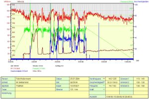 Bei der HF-Kurve seiht man, dass es mir am Ende des Schwimmens nicht